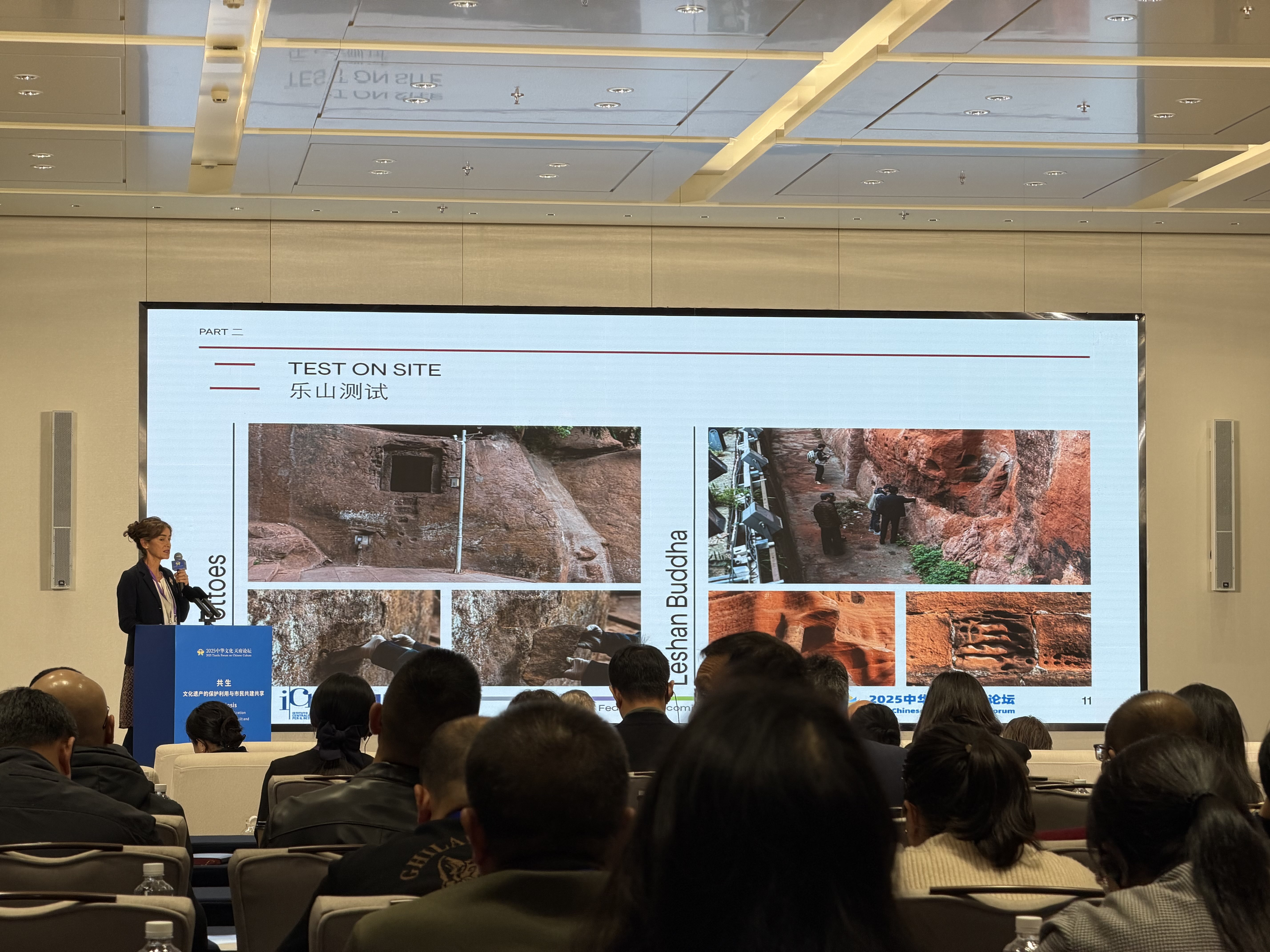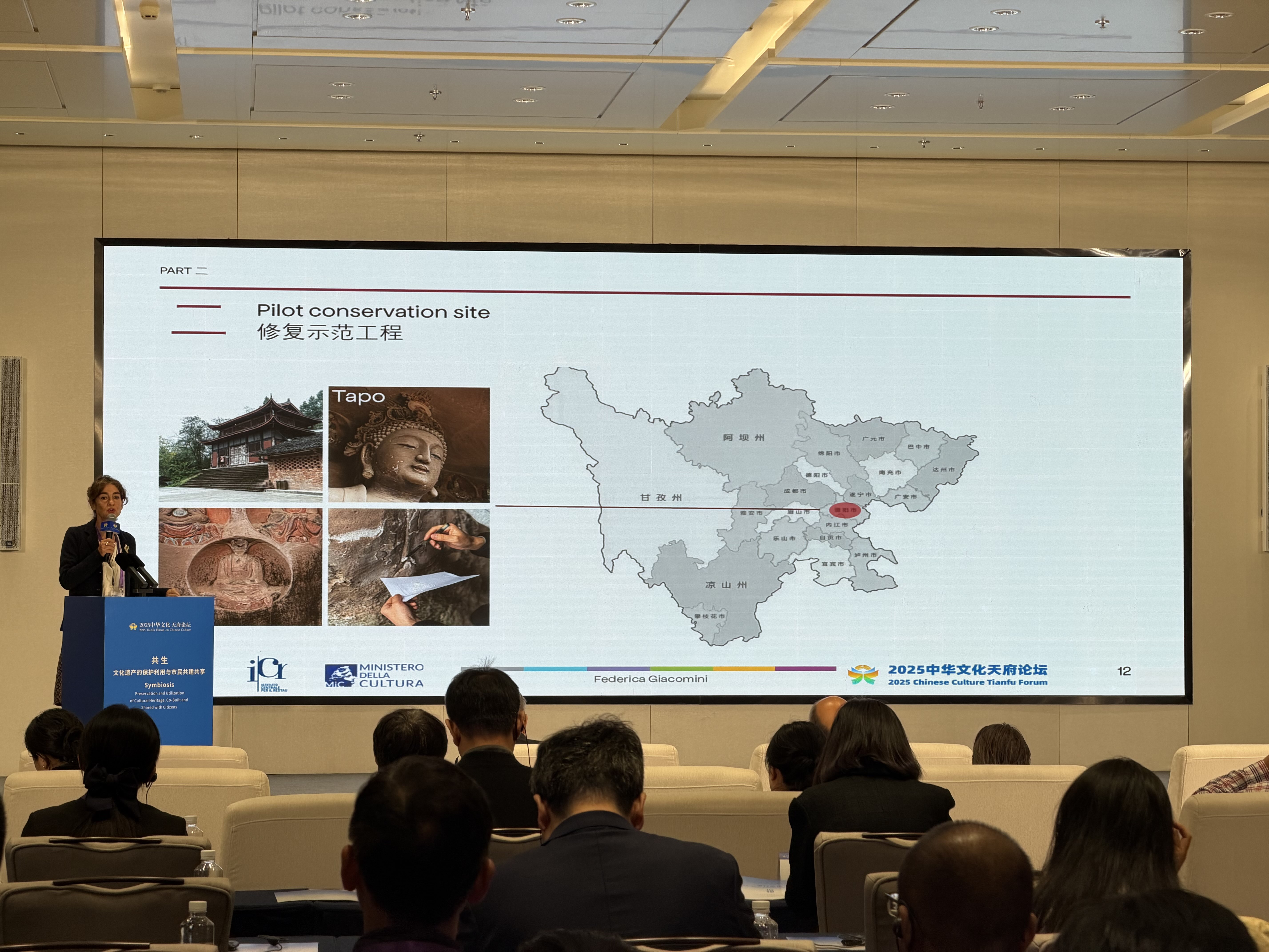 10月31日,在2025中中语化天府论坛——“共生:文化遗产的保护利用与市民共建分享”分论坛上,意大利中央文物竖立院石质文物竖立筹划追究东说念主费代丽卡·贾科米尼发表了“四川石窟保护与意大利体式论”为题的演讲,先容了满意两边在四川石窟保衬界限的深度合作,并分享了意大利的文物保护体式论,为四川石质文化遗产保护提供新想路。