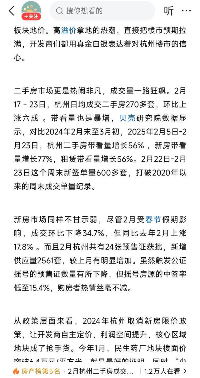 楼市新机遇,杭州楼市太燃了,二手房带看量增长56%,新址带看量增长77%,开释了什么信号?