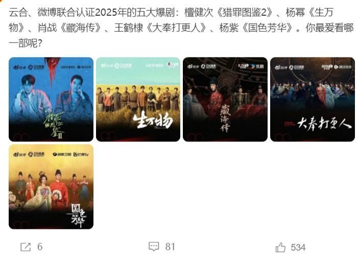 诸位读者,本年你都看哪些剧了呢?咱们可以发现,有些剧刚开播就取得极高的眷注,有些剧凭借口碑告捷出圈,但有些剧却“扑”了。近日,官方公布2025年的“爆剧”,共有5部,可比拟之下,《赴山海》太难爆了,这究竟是怎样回事呢?