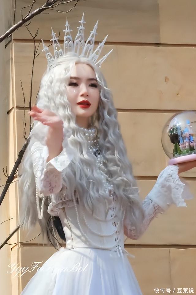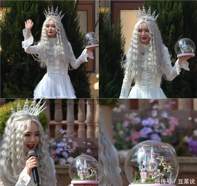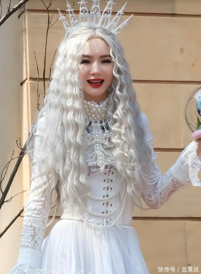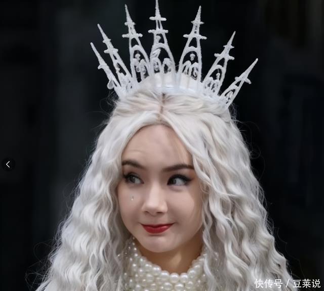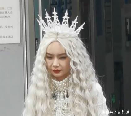 戚薇脸肿。 本日她作念了白色蓬松鬈发,搭配丽都的珍珠衣饰,头上还顶着一个超大的皇冠,简直就像童话里的女王。