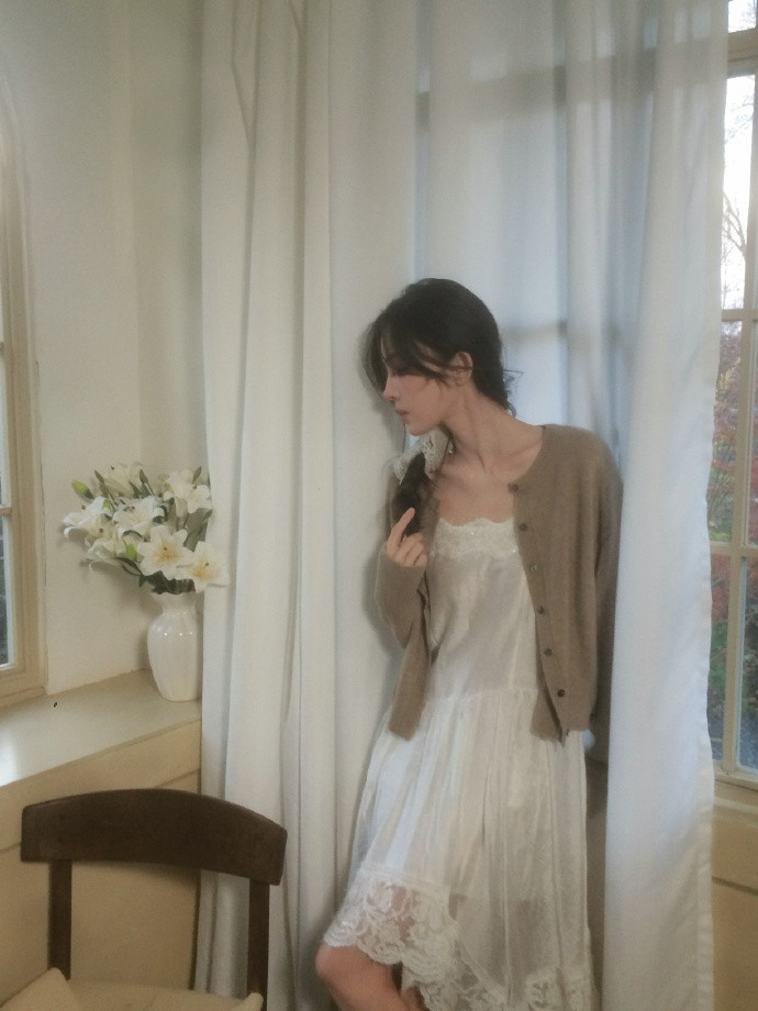 先说说这写照里娜扎身上的蕾丝裙。蕾丝这个东西,就像魔法布料通常,自带一种温和又苟且的滤镜。娜扎这孤单蕾丝裙呢,白色的主调白皙得就像刚下的雪,精良的蕾丝纹理大略艺术家尽心雕塑的艺术品。裙子上的蕾丝花边随着她的行动轻轻盈动,就像微风中摇曳的花朵。领口处乍明乍灭的肌肤,增添了一点小性感,确切“纯欲”感径直爆棚!前锋界有个说法,一件好的蕾丝裙能让女东说念主的魔力进步好几个线索,娜扎这穿在身上,径直好意思出天空了,完好意思即是“蕾丝裙范本”啊。
