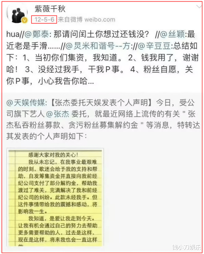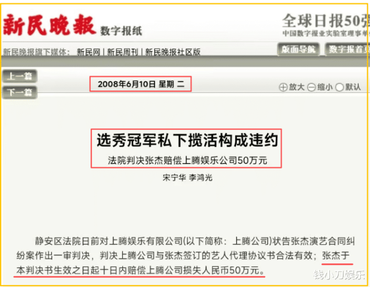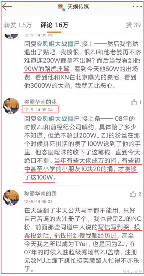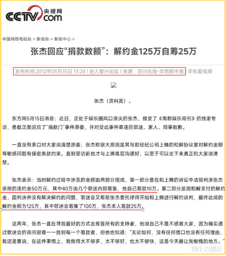 2008年,法院判决上腾文娱胜诉,条目张杰赔付上腾文娱50万补偿金。把柄合约,张杰还需要支付125万的解约金,盘算175万。据一位从2004年就守旧张杰的老粉说,其时的张杰给粉丝们开释出来的信号等于,他还是走头无路,淌若不赔钱,他的演艺生计就要到此截至,而他压根莫得钱。于是温情的粉丝们决定帮张杰渡过难关,有钱的粉丝一万一万的捐,没钱的小学生初中生十块二十块的捐,最终帮他凑出了140万元。