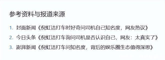 2025 3月一段倪虹洁打车时的视频在采集上激发了强烈商酌。在乘坐出租车的经由中,倪虹洁倏得趣味地问司机:“师父,你意识我吗?” 这看似松弛的一问,却像一颗插足安谧湖面的石子,激起千层浪。