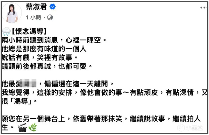 与他相熟的蔡淑君在本日凌晨发布悲讯,称 10 月 31 昼夜深得诤友问后心机难以平复,还回忆起冯淬帆闲居里老是说谈笑笑,台前魔力都备,擅自里也亲切可人,但愿他沿路走好。