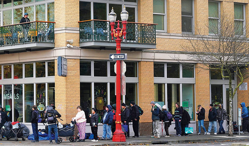 在好意思国俄勒冈州波特兰,恭候领取免费食品的东谈主们在街头排起长队(2025 年 11 月 4 日摄) 吴晓凌摄 / 本刊策略糜烂:从全球扩张到区域割据