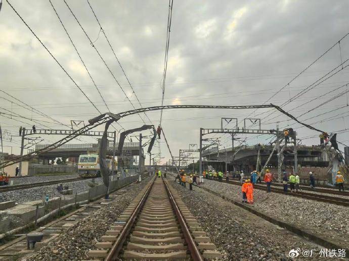 据广州铁路通报,3月29日15时许,龙卷风将铁路沿线一处彩钢瓦棚顶连同30多米长的钢架梁沿路吹至高铁宣战网,导致南广高铁、贵广高铁广州南至佛山西站间和广湛高铁佛山至荔湾站间宣战网挂异物停电,部分列车出现不同进度误点、停运。