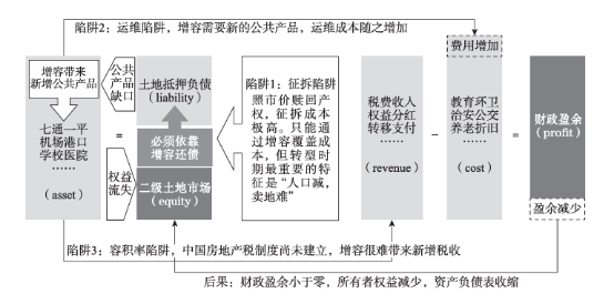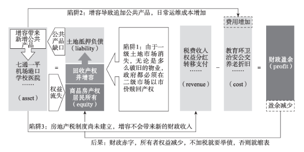 增容例必需要新增东说念主口。如果城市东说念主口已经趋近踏实,增多的容积率要么莫得东说念主要,名目烂尾;要么挪动城市较差区位的东说念主口,引起其他区域东说念主口减少堕入阑珊。就算名目自身有富余的需求,增容变成的人人家具过火运维成本增多,相通会导致畴昔城市政府财政盈余减少,以致出现赤字——老旧小区增容校正所形成的便是城市的“负财富”(见下图)。