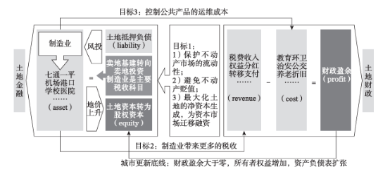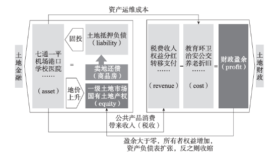 城市财富欠债表(地盘金融)和利润表(地盘财政)的联动关系 注:左侧为城市化1.0 阶段,“地盘金融”,成立城市财富欠债表; 右侧为城市化 2.0 阶段,“地盘财政”,保管城市利润表。