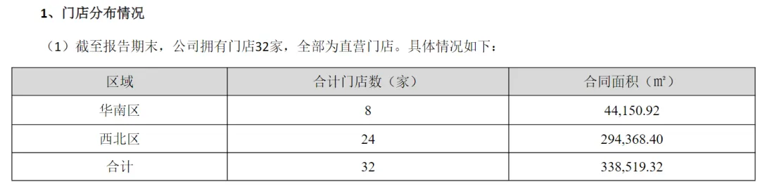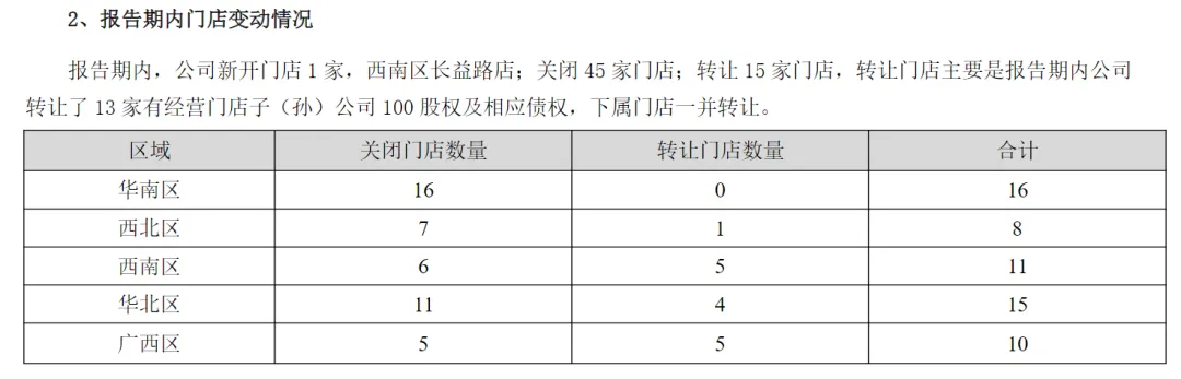 限度2024年12月31日,公司业务遮掩华南、西北区域,领有门店32家。呈报期内,公司关闭门店45家,转让门店15家,新开门店1家。