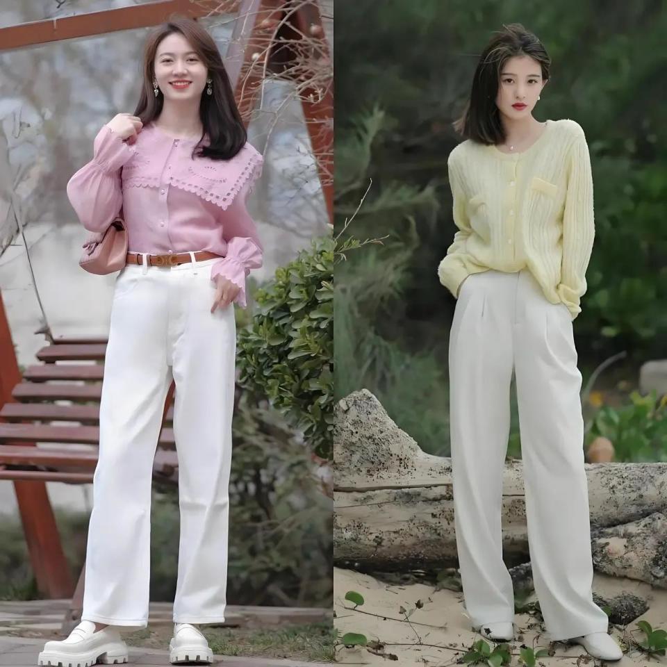 白色的裤子如实很百搭,同期思让造型更出彩,遴荐上衣的穿戴面目亦然有一定的花式方法的,比如说思让我方的穿衣打扮更显年青,这时辰遴荐低充足度的穿戴,上衣最合适,举例粉色衬衫大概是黄色的诚笃开衫,穿在身上之后,已而就能让你显白显嫩显年青。